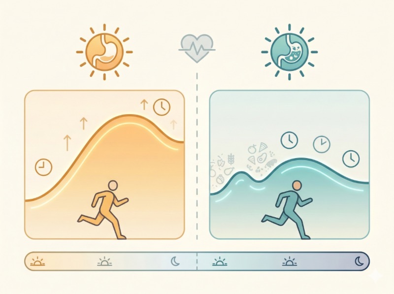 訓練品質會下降。 空腹狀態下做中高強度有氧,你的表現通常不如吃飽後,運動時間可能縮短、速度可能下降、感覺也更累。如果你的訓練量因此打折,你消耗的總熱量反而更少——這直接抵消了所謂的「燃脂優勢」。